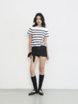 Áo thun dáng regular fit với điểm nhấn sọc đen được cắt từ vải riêng và may đè, tạo hiệu ứng sọc nổi tinh tế và hiện đại.