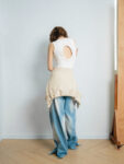 Điểm nhấn nằm ở phần lưng khoét tròn nhẹ nhàng viền bèo nhún, vừa nữ tính vừa hiện đại.